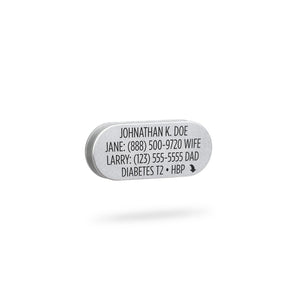 The MyID Pod is designed to fit a wide variety of products from bracelets to necklaces to keychains. It's made from a single piece of anodized aluminum and the information is laser engraved to ensure maximum durability and legibility.