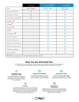 Great question! MyID products link to your online medical profile that you create for free at getmyid.com or download our free App. Some of our products, such as our MyID Hive, have some customizable option in conjunction with having access to your online profile. Hope this helps!