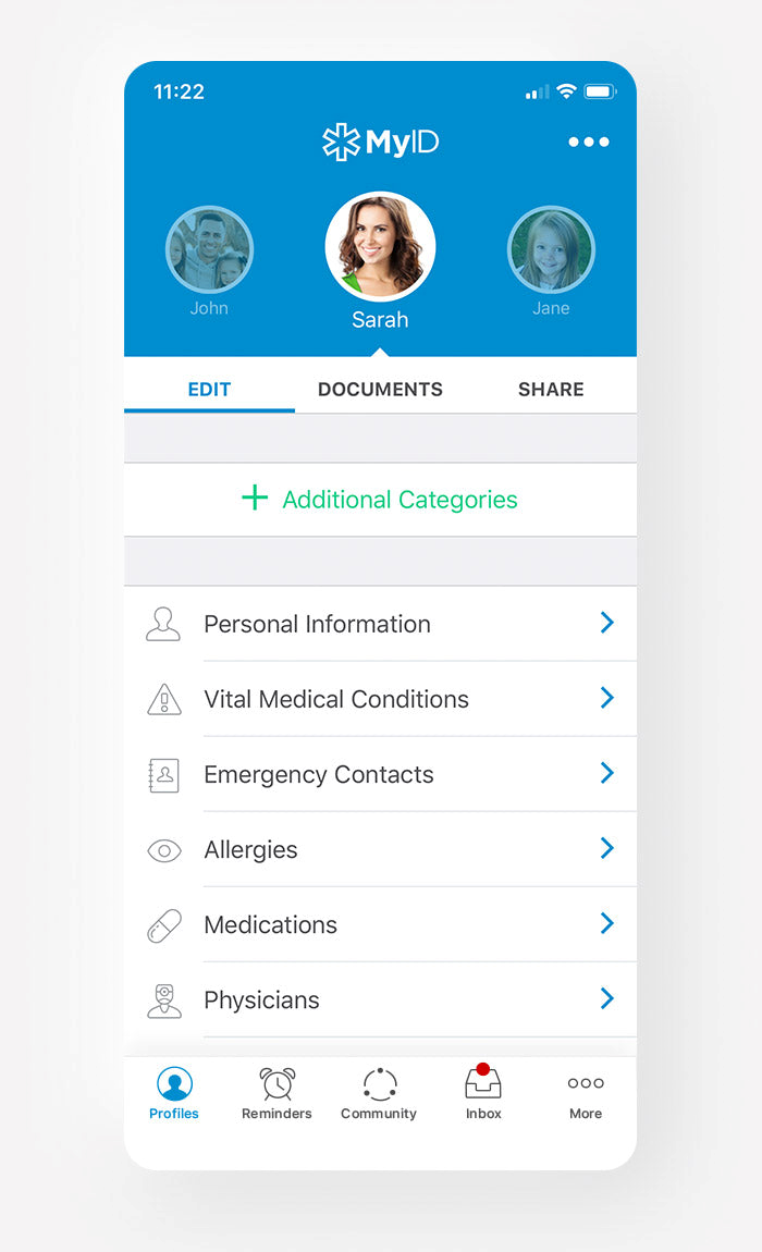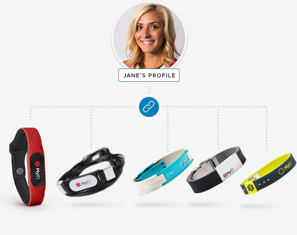 The medical ID that provides an easy way to access, store, and manage your health information. Your medical profile can be accessed anytime, anywhere via MyID Products such as bracelets, sticker kits, and mobile apps.
